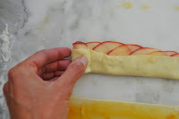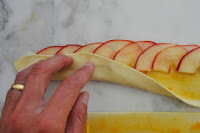 - Coloque as maçãs em camadas dentro da forma da torta.