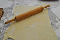 sobre uma superfície enfarinhada e forre o fundo e a lateral de uma fôrma